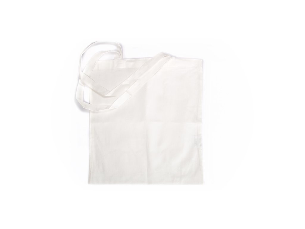Bílá plátěná taška ze 100% bavlny.