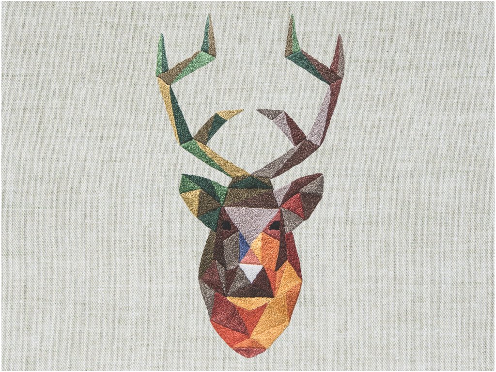 Vše co potřebujete pro výrobu výšivky s geometrickým jelenem, včetně vzoru na překreslení a 18 barevných bavlnek Perlovek.