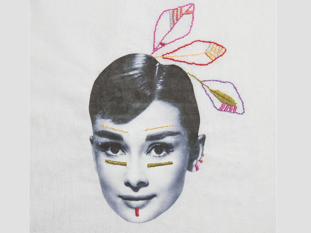Vše, co potřebujete, abyste si vyšili indiánskou Audrey na tašku nebo kamkoliv jinam.