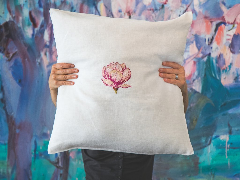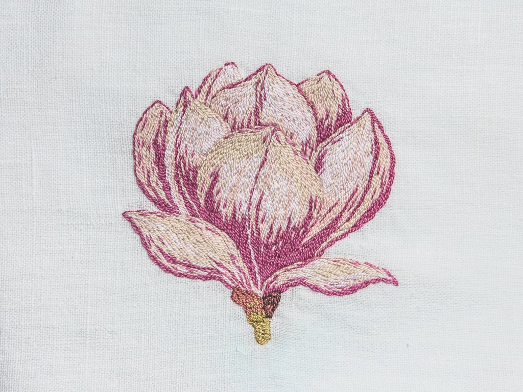 Všechno co potřebujete pro vyšívanou magnólii, včetně vzoru na překreslení a podrobného návodu.